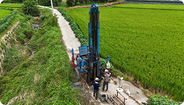 물리탐사: 기반암의 연장성 및 심도 자료 확보